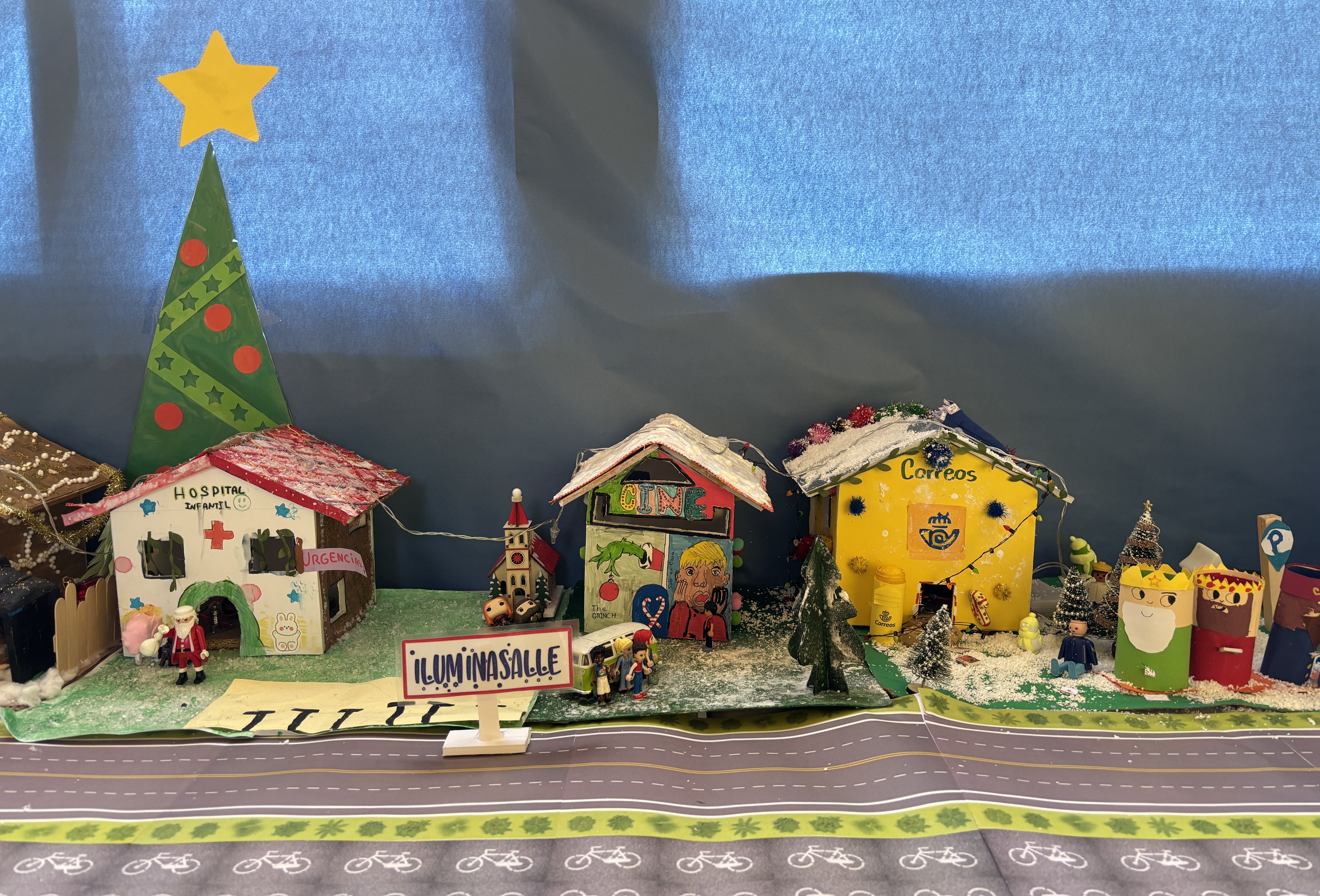 “Ilumina vida”. Durante dicho proyecto hemos investigado, profundizado y puesto en práctica nuestros conocimientos sobre las luces y las sombras. La primera parte han sido varios experimentos que hemos realizado con velas, linternas, globos y agua entre otros elementos y que nos han ido dando ideas para la realización del producto final. En la segunda parte nos hemos acercado a la figura de Isaac Newton realizando un disco para trabajar la descomposición de los colores. Por último, la parte mas entretenida y que mas tiempo nos ha llevado ha sido la construcción y decoración de forma navideña de una casa en cuyo interior hemos colocado un circuito eléctrico. ¡Qué bien lo hemos pasado pelando cables! Todos dijimos “Eureka” cuando se encendió la bombilla del circuito de nuestro grupo. El nombre de la ciudad que hemos construido entre todos ha sido “Iluminasalle”. Para dar más forma al proyecto, las casas han sido edificios públicos como museo, hospital, cine, ayuntamiento, biblioteca, oficina de turismo u otros edificios como iglesia, supermercado, oficina de turismo, quiosco o casas de una urbanización. Los alumnos de 5º Primaria estamos muy orgullosos del producto final que hemos realizado y que ha sido visitada por todas aquellas familias de infantil y primaria que han querido.