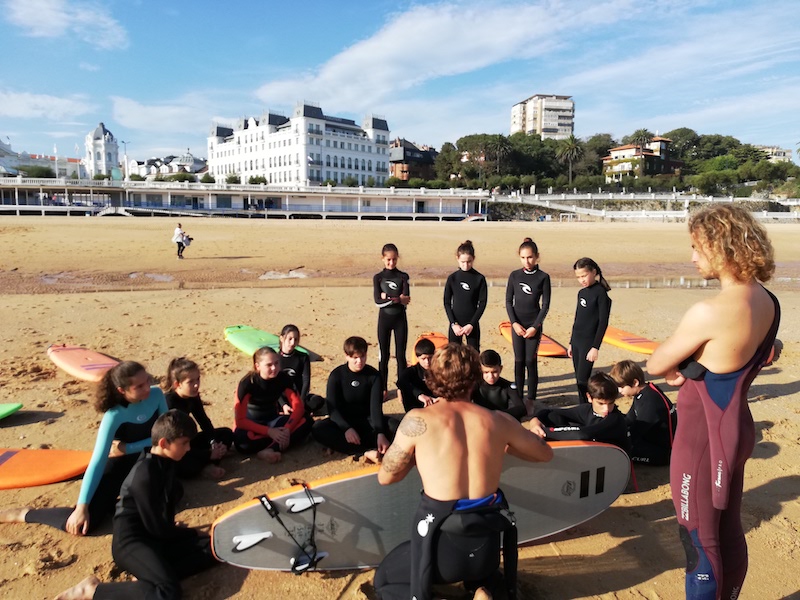 La mañana del pasado sábado 6 de octubre, 16 alumnos de Secundaria acompañados por su profesor de Educación Física y dos monitores, se lanzaron al agua en la playa del Sardinero para coger olas, primera actividad de este curso de Salle Joven.