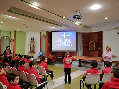 Todos los alumnos del colegio pasaron por la capilla del centro junto a sus profesores para la imposición de la ceniza. Un rito que acerca, en el inicio de este tiempo litúrgico, a vivir con mayor profundidad la cuaresma.