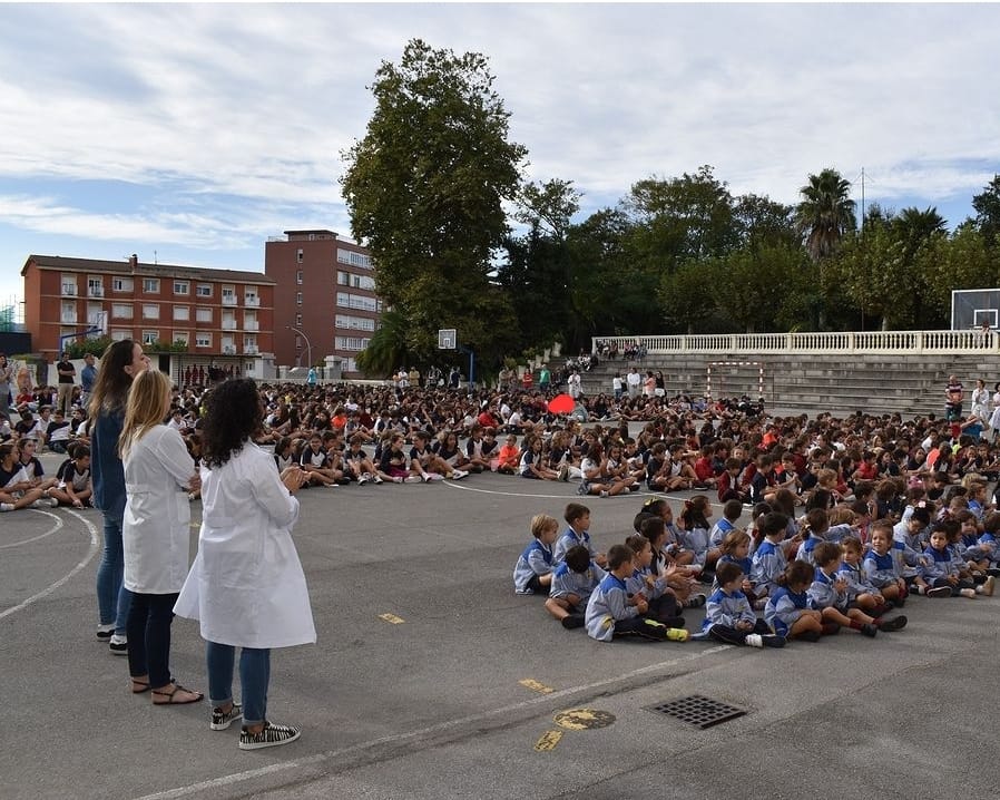 A las 11:00 horas tuvo lugar un acto en el patio al que acudieron alumnos, profesores, familiares y personal no docente. En él se completó un mural con animales donde cada clase había escrito un propósito relacionado con el medioambiente.