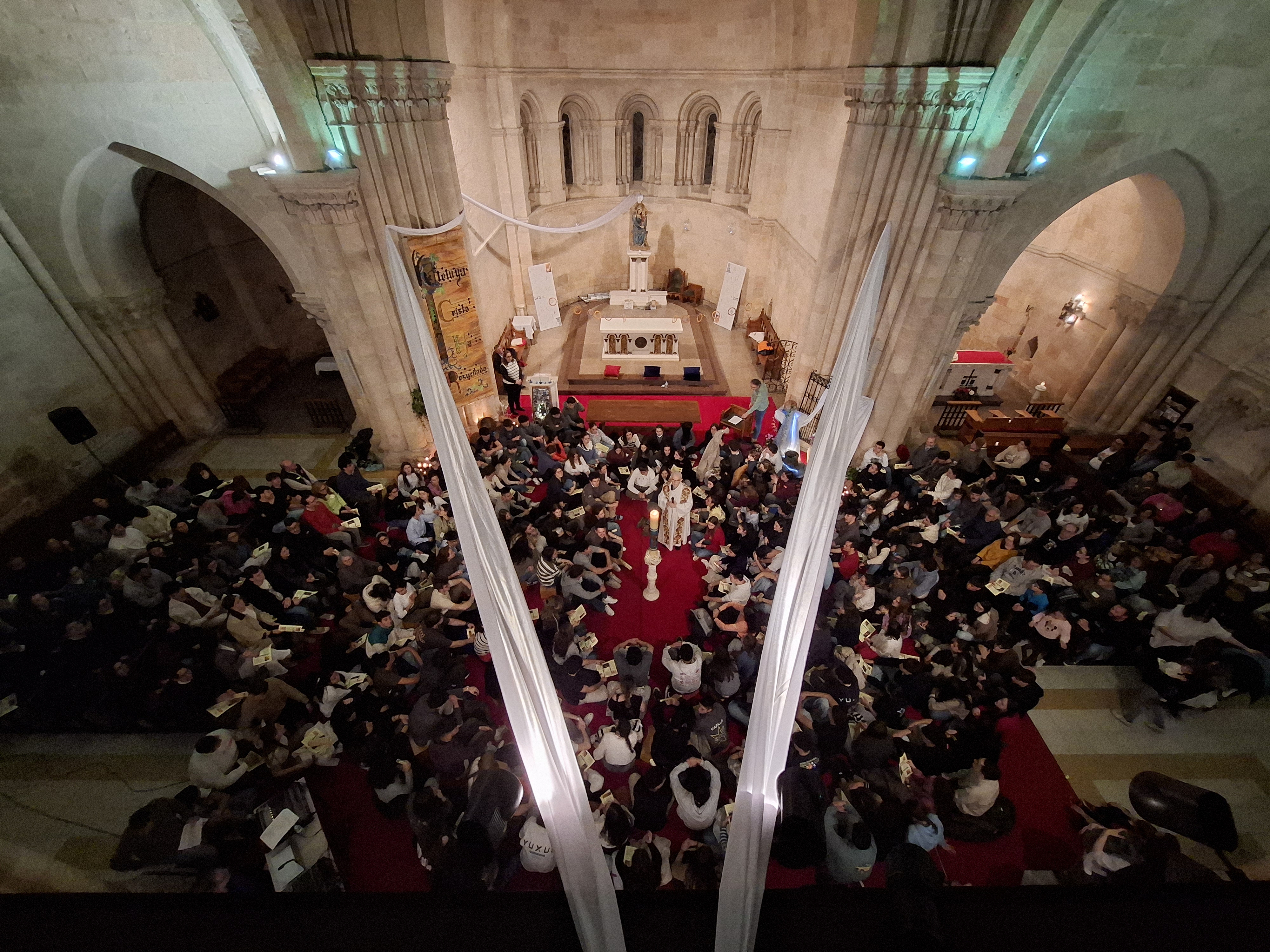 El Viernes Santo se centró en el juicio y pasión de Jesús, con una representación vivencial por “territorios” temáticos que permitió a cada grupo recorrer momentos clave del camino hacia la cruz. Durante la tarde, la lectura de la Pasión y los talleres en torno a la oración universal ofrecieron espacios de reflexión profunda sobre las heridas del mundo, seguidos de la adoración a la cruz, momento central de la vivencia pascual.