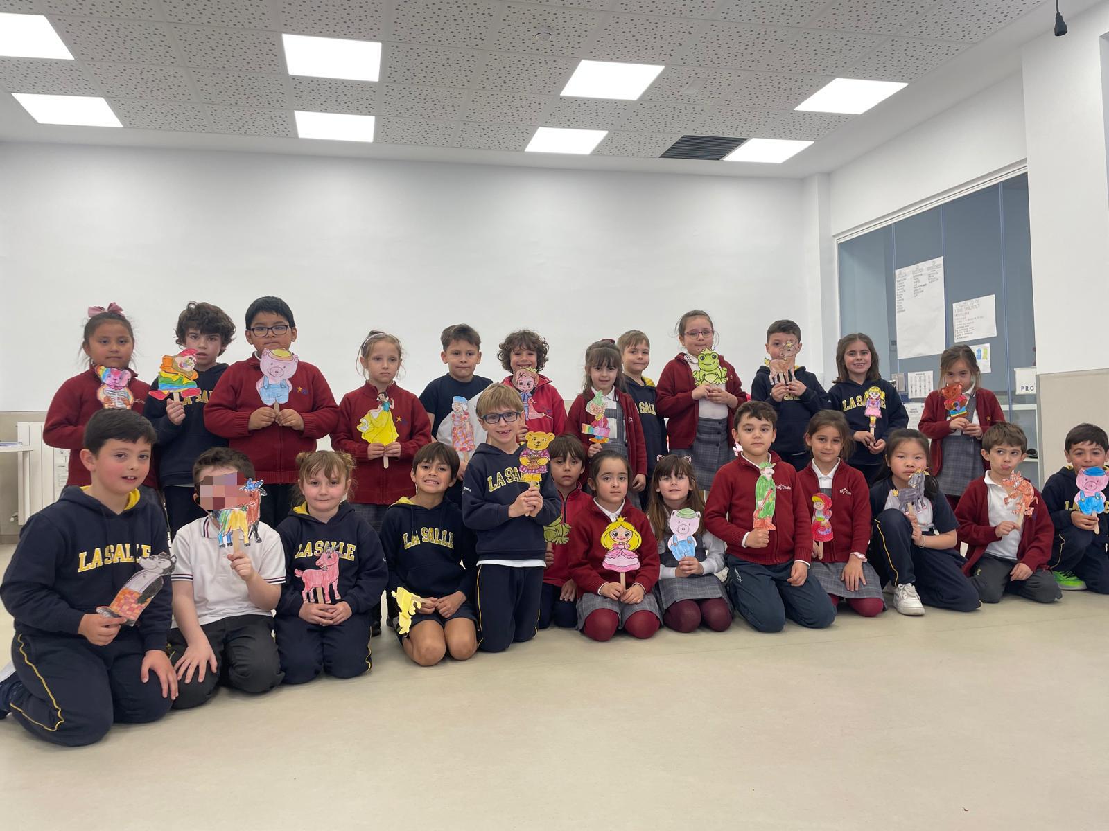 En varios turnos, representan cuentos clásicos como “Los siete cabritillos”, “Caperucita Roja”, “Los tres cerditos”…con los que disfrutamos un montón. Interpretan con gestos y sus títeres estas historias que tanto gustan a pequeños y mayores. Rompen el miedo escénico y se concentran en cada uno de sus personajes, demostrando todo lo que han aprendido con este proyecto.