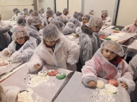 Ayer, viernes 2 de febrero, los niños de 3 años hemos realizado nuestra primera salida del cole. Hemos podido visitar el obrador de la Gallofa de Nueva Montaña. Nos vestimos con la ropa adecuada y pudimos visitar todas las instalaciones y nos explicaron cómo se elaboraba el pan.  La parte más divertida fue cuando pudimos manipular la masa y elaborar nuestro propio pan y hasta pudimos degustarlo.