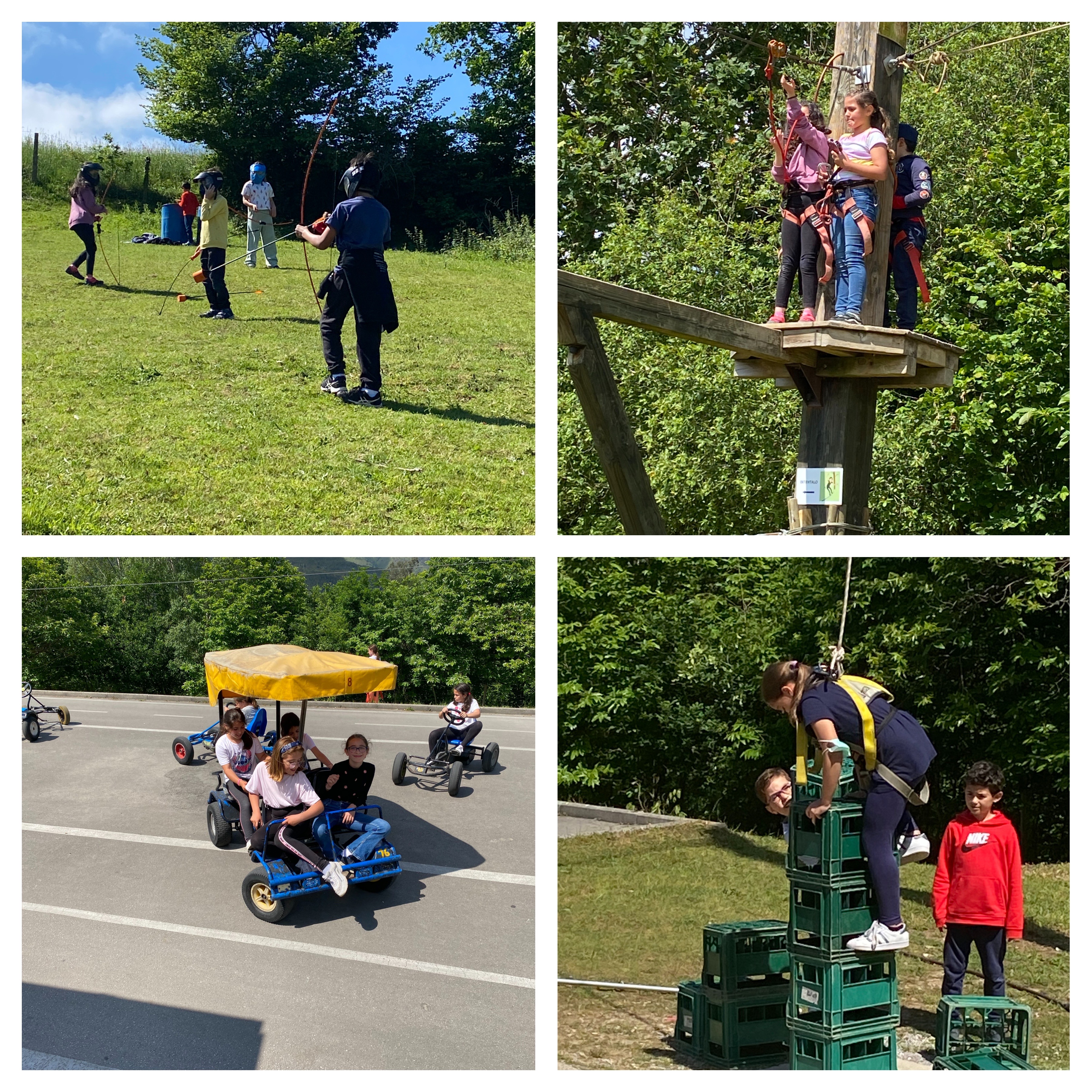 A la llegada, más de una docena de monitores les esperaban para dar comienzo a las actividades preparadas para esos días. Tras la creación de pequeños grupos, empezaron a disfrutar de las actividades, en las que iban rotando: tirolinas, los circuitos en altura, el futbolín, el juego de la rana, tiro con arco, circuito de karts, camas elásticas, laser combat, paintball, archery tag, rocódromo. En la velada nocturna disfrutaron de música y baile en la discoteca.