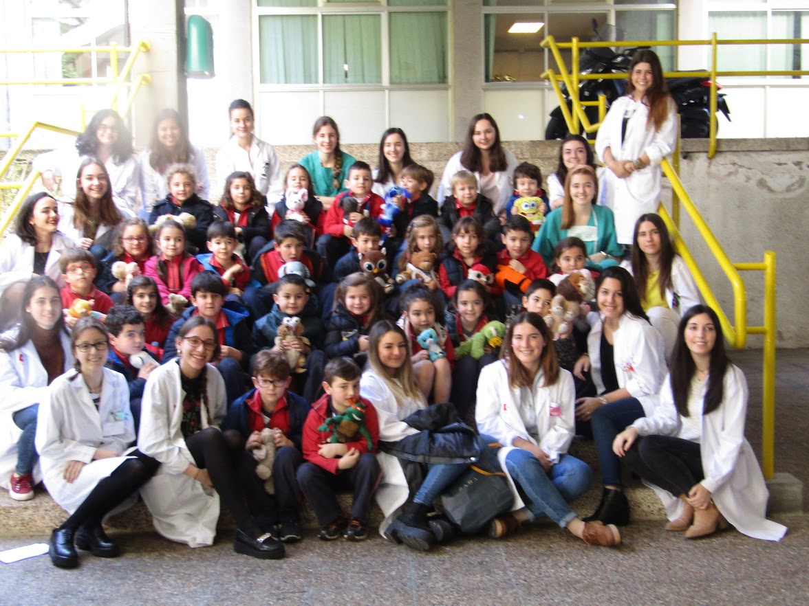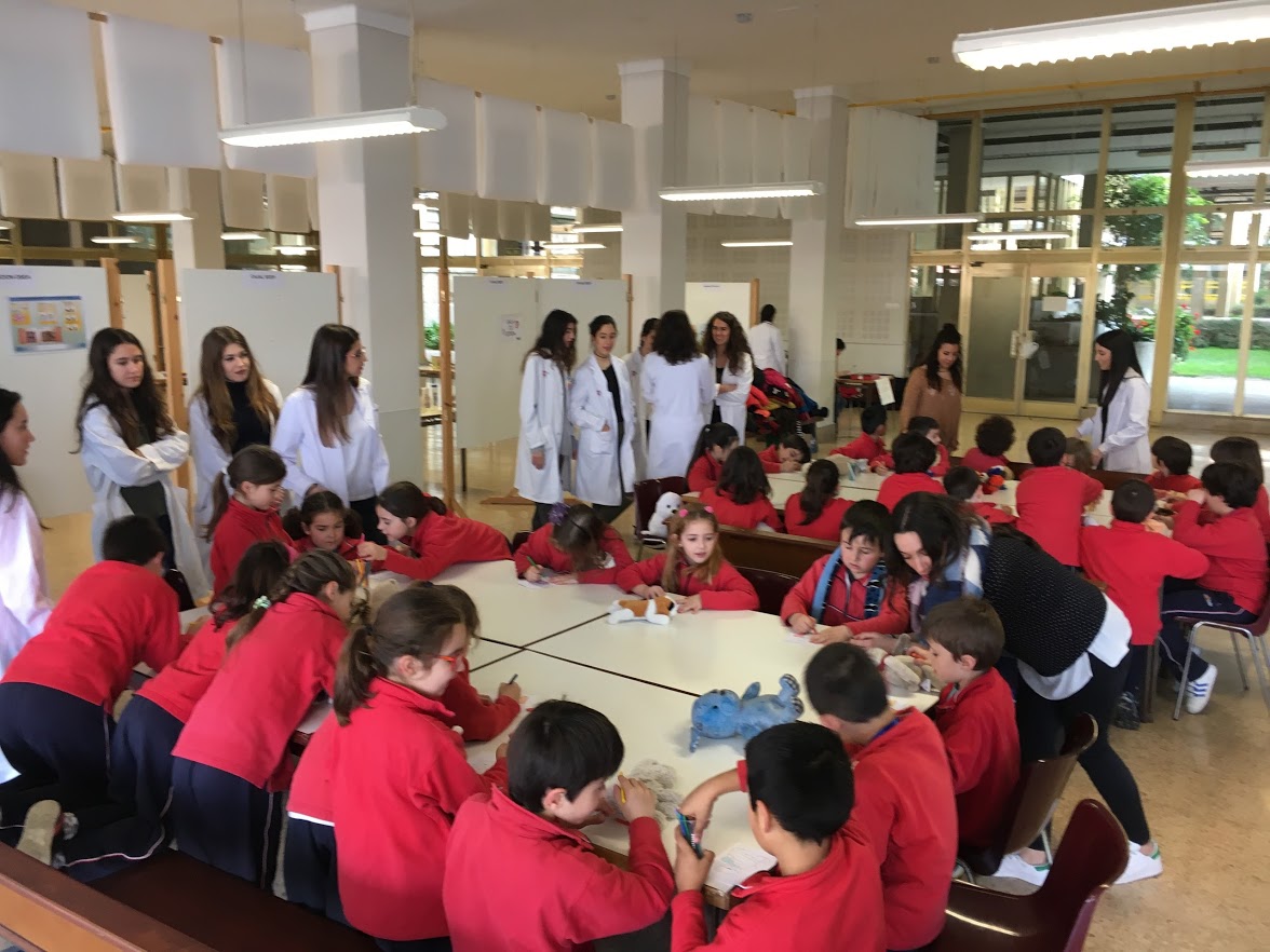 Entre otras actividades los estudiantes de Medicina ejercieron de pediatras con los peluches de los niños, aproximándoles a conceptos propios de una consulta médica como la utilización de un fonendo, vendajes, revisiones de oftalmología, revisiones dentales, quirófanos, radiografías….
