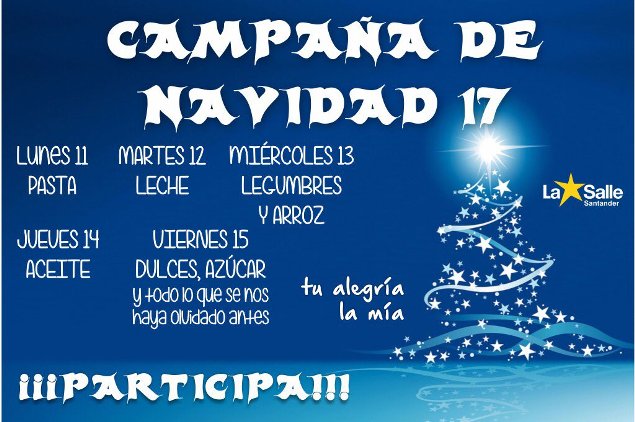Lo haremos a través de la Campaña de Navidad durante la semana del 11 al 15 de diciembre con la recogida de alimentos y su posterior reparto a instituciones de Santander.