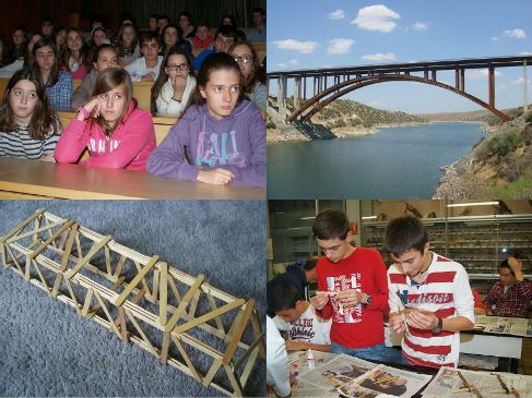 En un primer momento se expuso brevemente el porqué de los puentes, los tipos de puentes y cuáles son los motivos principales para elegir un tipo u otro. Todo ello acompañado de algunos conceptos básicos relativos a su construcción y a su comportamiento estructural. A continuación llegó el tiempo de la creatividad y de la habilidad para crear una estructura reticulada lo más resistente posible. Los materiales empleados fueron palos de madera de diferentes tamaños y cola blanca para las uniones. La ayuda y el apoyo de los chicos de Bachillerato fue importante para consolidar las distintas ideas que iban surgiendo. Las soluciones fueron variopintas, llegando algún grupo a terminar en tiempo récord un puente sólido.