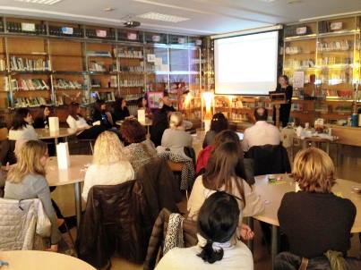 Durante la tarde del 8 de marzo, Día de la mujer trabajadora, un grupo de mujeres – y algún osado caballero - nos reunimos en torno a un café en la biblioteca. El objetivo no era “dar un golpe de estado libertario” . La finalidad no fue otra que leer, dramatizar, escuchar poemas y canciones que nos toman a la mujer como protagonista. Con textos de Almudena Guzmán, Mario Benedetti, el Arcipreste de Hita, Ángel González, Luis Alberto de Cuenca, etc.,  fuimos capaces de crear un acogedor ambiente en el que hubo hubo momentos para todo: la risa, la sonrisa, el humor, la reflexión, la emoción, la reivindicación... Alumnas, madres, hermanas, compañeras, amigas, …La tarde, se hizo más amable en vuestra compañía.