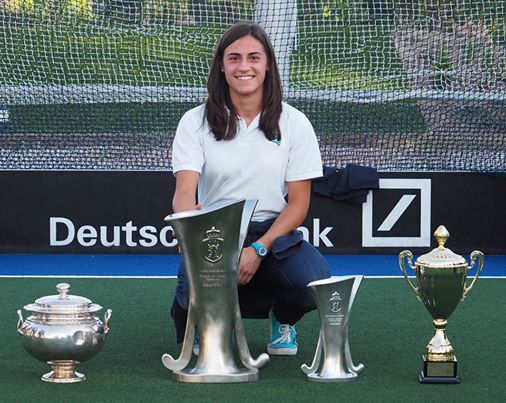 Especialmente queremos felicitarla por los resultados obtenidos en esta temporada con su equipo de hockey: Club de Campo Villa de Madrid. Ha ganado la Copa de la Reina, la Liga, el campeonato de España de sala, y han quedado subcampeonas en el campeonato de Europa de sala.